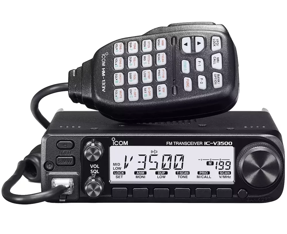 Entre las características destacadas de la Icom IC-V3500 se incluyen un altavoz frontal de alta potencia que garantiza una salida de audio clara y potente, y una pantalla LCD de alto contraste que facilita la lectura de información en diversas condiciones de luz. La radio también cuenta con funciones avanzadas como el escaneo de canales, la operación de tono CTCSS y DTCS, y un temporizador de tiempo de transmisión (TOT) para evitar el uso excesivo de la radio. Además, su interfaz de usuario es intuitiva y fácil de usar, con botones grandes y bien ubicados para un manejo cómodo y rápido.